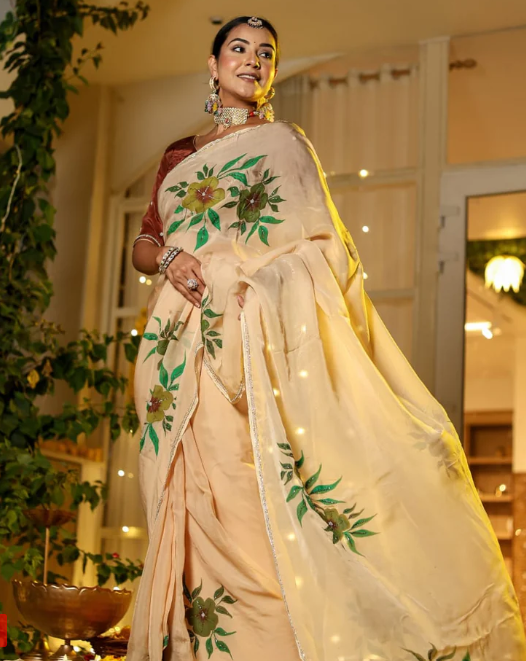 Elevate your style with our Ravishing 1-Minute Ready To Wear Beige Georgette Silk Saree. Crafted from luxurious georgette silk, this saree exudes elegance and sophistication. The soft, lightweight fabric drapes beautifully, creating a flattering silhouette. Perfect for special occasions or everyday wear, this saree will make you feel like a true style icon.